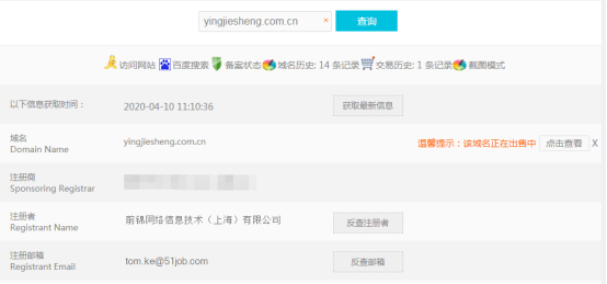 但2015年的前程無憂似乎覺得已經足夠了,也不曾關注yingjiesheng.com之外其他相關的域名。